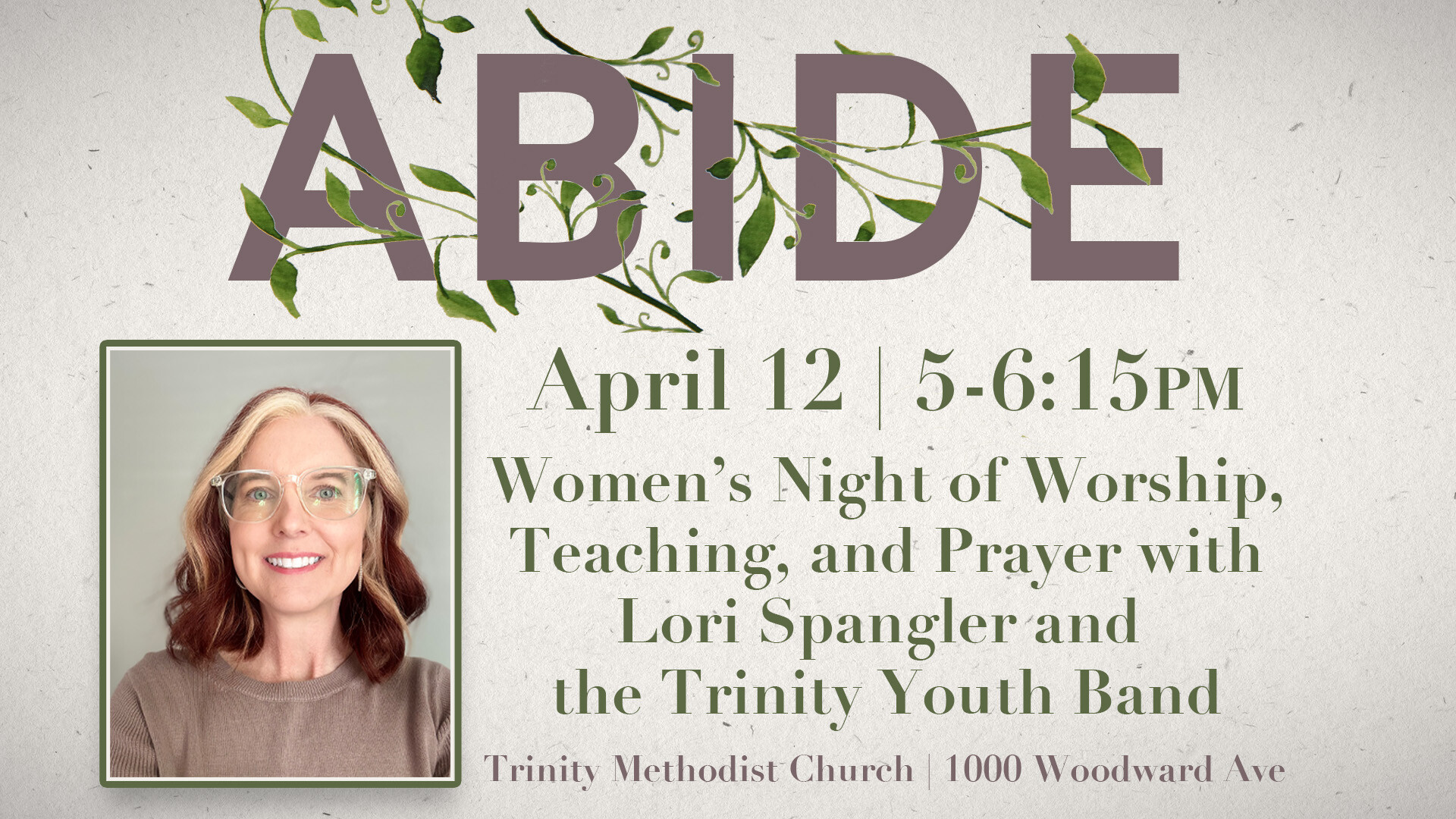 Abide Women's Night of WorshipApril 12, 2026Join us on Sunday, April 12 at 5pm in the Trinity Center. Women of all ages are invited to join us for a time of...
